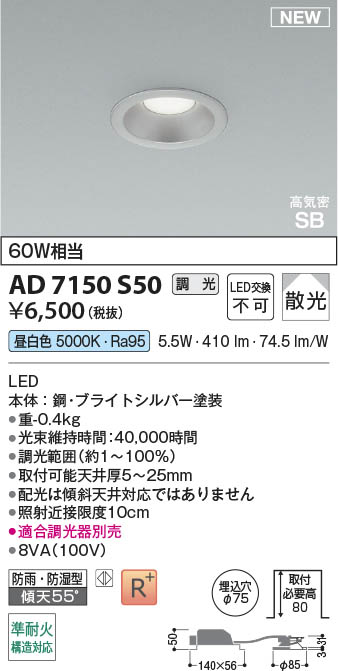 Koizumi ¥³¥¤¥º¥ß¾ÈÌÀ LED¹âµ¤Ì©SB¥À¥¦¥ó¥é¥¤¥È AD7150S50