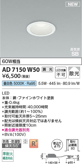 Koizumi ¥³¥¤¥º¥ß¾ÈÌÀ LED¹âµ¤Ì©SB¥À¥¦¥ó¥é¥¤¥È AD7150W50