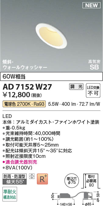 Koizumi ¥³¥¤¥º¥ß¾ÈÌÀ LED¹âµ¤Ì©SB¥À¥¦¥ó¥é¥¤¥È AD7152W27