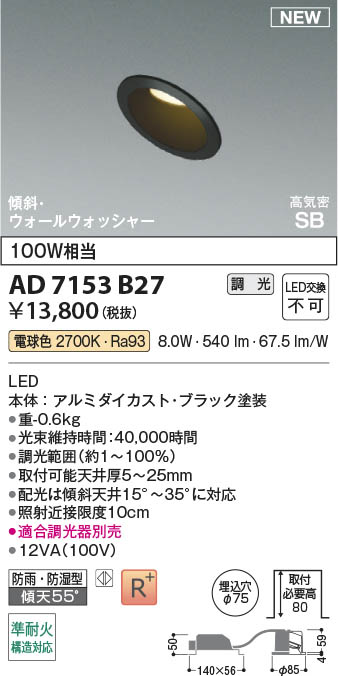 Koizumi ¥³¥¤¥º¥ß¾ÈÌÀ LED¹âµ¤Ì©SB¥À¥¦¥ó¥é¥¤¥È AD7153B27