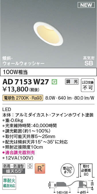 Koizumi ¥³¥¤¥º¥ß¾ÈÌÀ LED¹âµ¤Ì©SB¥À¥¦¥ó¥é¥¤¥È AD7153W27