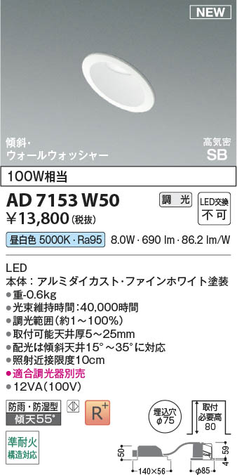 Koizumi ¥³¥¤¥º¥ß¾ÈÌÀ LED¹âµ¤Ì©SB¥À¥¦¥ó¥é¥¤¥È AD7153W50