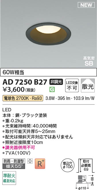 Koizumi ¥³¥¤¥º¥ß¾ÈÌÀ LED¹âµ¤Ì©SB¥À¥¦¥ó¥é¥¤¥È AD7250B27