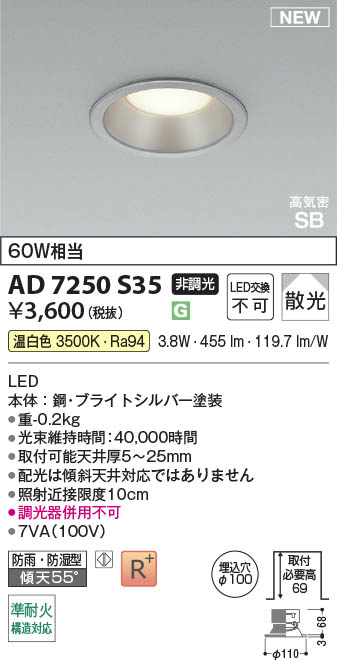 Koizumi ¥³¥¤¥º¥ß¾ÈÌÀ LED¹âµ¤Ì©SB¥À¥¦¥ó¥é¥¤¥È AD7250S35