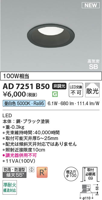 Koizumi ¥³¥¤¥º¥ß¾ÈÌÀ LED¹âµ¤Ì©SB¥À¥¦¥ó¥é¥¤¥È AD7251B50