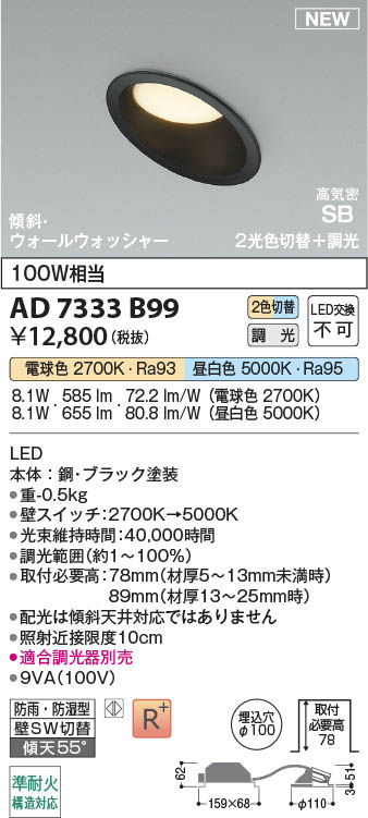 Koizumi ¥³¥¤¥º¥ß¾ÈÌÀ LED¹âµ¤Ì©SB¥À¥¦¥ó¥é¥¤¥È AD7333B99