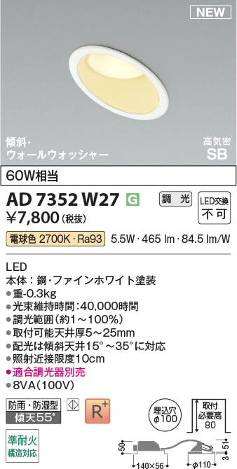 Koizumi ¥³¥¤¥º¥ß¾ÈÌÀ LED¹âµ¤Ì©SB¥À¥¦¥ó¥é¥¤¥È AD7352W27