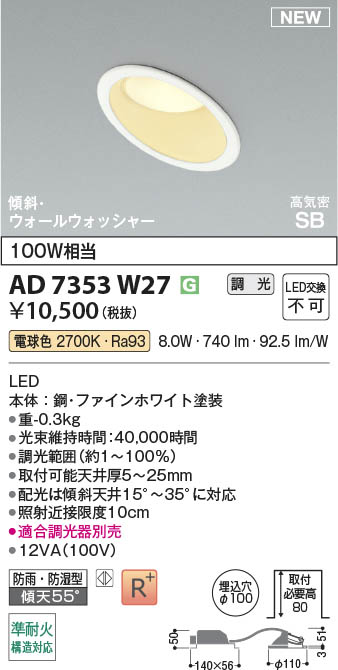 Koizumi ¥³¥¤¥º¥ß¾ÈÌÀ LED¹âµ¤Ì©SB¥À¥¦¥ó¥é¥¤¥È AD7353W27