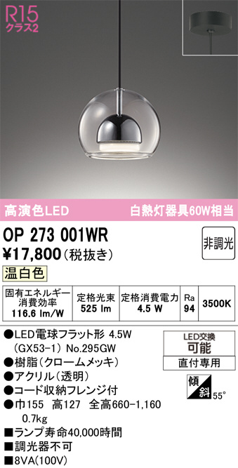 ODELIC ¥ª¡¼¥Ç¥ê¥Ã¥¯ ¥Ú¥ó¥À¥ó¥È¥é¥¤¥È OP273001WR