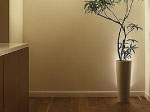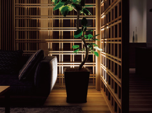 コンセントタイプのアッパーライトは観葉植物の裏に仕込むことで天井面に影を描きます。