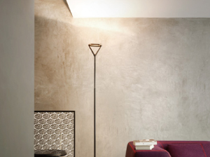 壁や天井に美しい光を描く床置き式のアッパースポット。まぶしさに配慮された設計で横向きでもOK。