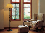 クラシックスタイルのフロアスタンド。控えめな装飾がアールとプリーツの美しさをより一層引き立てる。