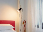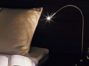 ベッドサイドの低い位置。私とあなたの真ん中に、ホテルの客室のような雰囲気のスタンドライト。