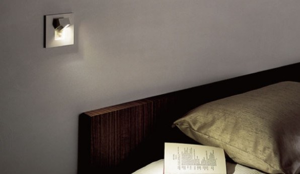 目にとって不快なグレア(眩しさ)をカットするプレミアムダウンライト。落ち着いた空間作りと天井面のすっきり感に貢献。ベッドサイトと足元にピンポイントで狙い撃ち。
