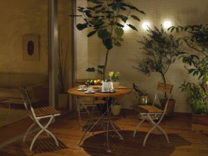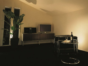 ソファバックなどに簡単にできる間接照明アイテム、DST-34945は床置き式のアッパースポット。調光器との併用で効果倍増。床面から立ち上がってくる光の感じがGOOD。