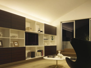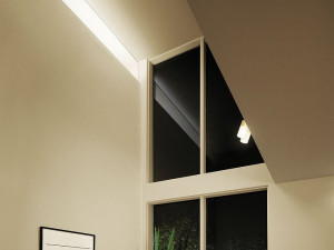 直線状のキセノンランプで壁をやさしく照らし、広がりを醸し出す間接照明。調光による味わいの変化もまた格別です。新築やリフォームの際にどうぞ。