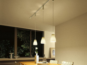 配線ダクト取付専用でプレーンなデザインの白磁のペンダントライト。コード収納プラグで、吊り高さの調節が簡単です。バランスよく配置してみてください。