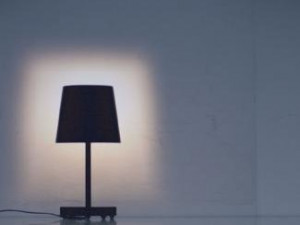 ピタリと壁に張り付いているスタンド。アームを手にとって壁から離してやると、壁面との間から漏れた光が空間を照らし、自らは真っ黒な影となる。。。
