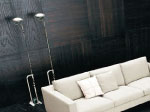 灯具可動式のワイヤー式フロアスタンド。デザイン照明史に残る名作。こういう器具をさりげなく使いこなしたいところ。D:アッキレ・カスティリオーニ