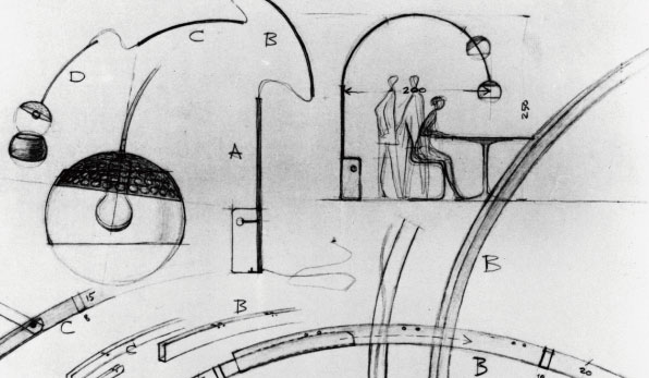 Euroluce 2003で復刻されたカスティリオーニ兄弟の代表作。アンバランスに見えるフォルムは彼等も愛したスヌーピーへのオマージュでしょうか。
