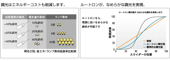 ◆ほどよく心地よい明るさを、きめ細かい調光で発見し実現するという調光のメリットを享受しつつ、省エネルギーでエコロジカルな照明スタイルも可能にします。